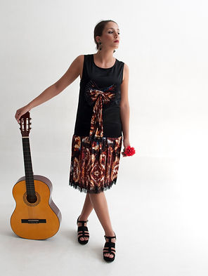 La colección reúne lo tradicional, lo rústico y la energía de esta cultura, añadiendo estampados, volantes, puntillas, plisados y telas de lino recordando así al mundo rural y al folklore.